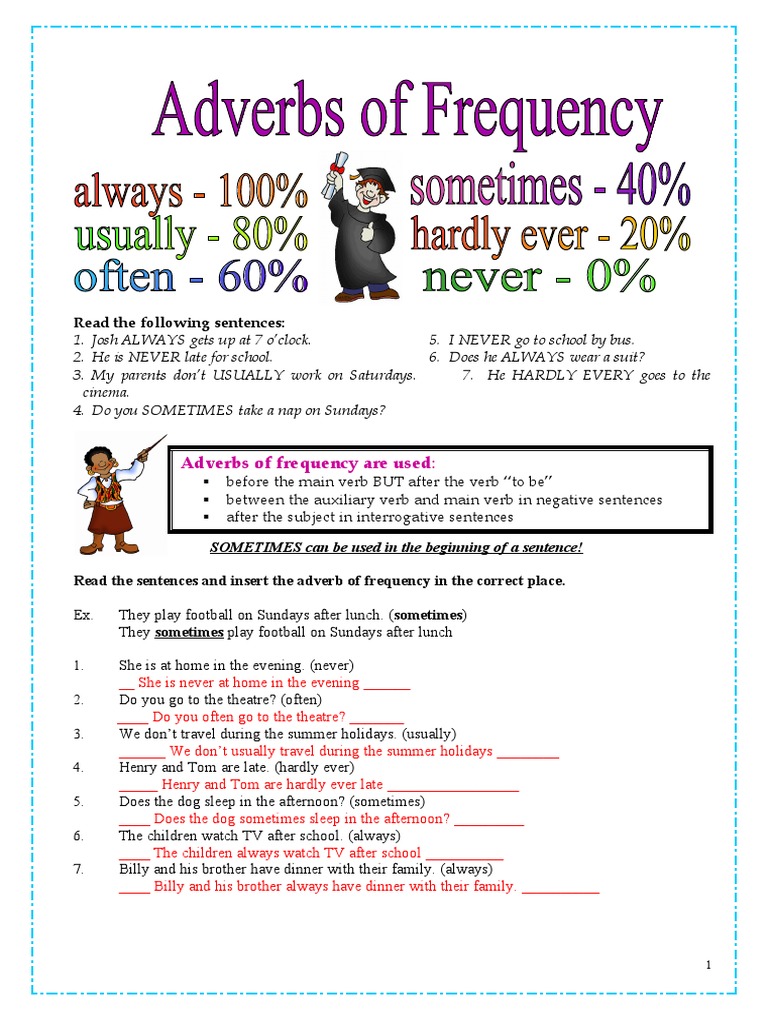 Adverbs of frequency exercises 1 eso pdf. Put the adverb of frequency in the correct position in the sentences. Frequency Adverbs Worksheet Pdf. Worksheets pdf - print.